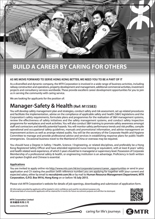 For enrolment, please reserve your seats by complete the attached reply slip via email: srso@srso.org.hk or fax it back to the Society (Fax No.:2590 6344) by 15 June 2015. Please pay the Society by crossed cheque made payable to "Society of Registered Safety Officers". .